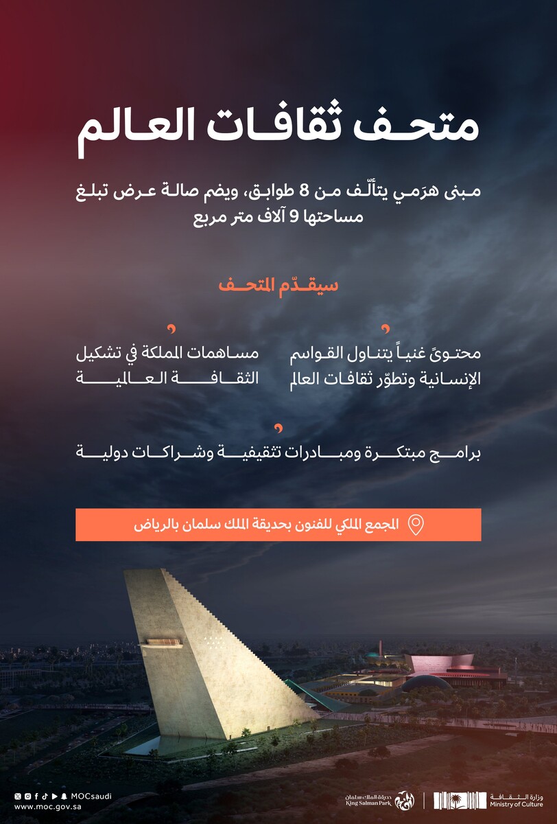وزارت ثقافت کے ایکس اکاونٹ کے مطابق یہ میوزیم رائل آرٹ کمپلیکس میں بنایا جا رہا ہے،جس کی بلندی 110 میٹر ہے جو ریاض کو عالمی ثقافتی منزل کے طور پر نمایاں کرے گا۔