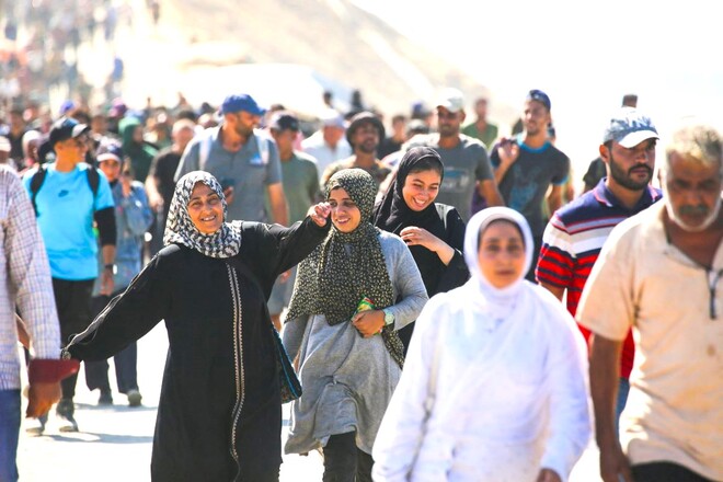 ہزاروں فلسطینی شہری غزہ کے ساحلی علاقے میں بلند سڑکوں پر پیدل سفر کرتے نظر آئے، جو دو برس کی شدید لڑائی کے بعد اپنے علاقوں کو لوٹنے کی کوشش کر رہے تھے۔