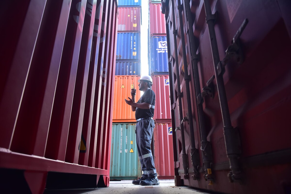 جب جہاز کراچی کے قریب پہنچا تو بندرگاہ کے عملے نے جدید ترین خودکار کرین نظام کو متحرک کیا۔