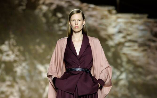 ’ لییم‘ نے دن کا آغاز ایسی کلیکشن سے کیا جس میں گہرے رنگوں کی جھلک تھی اور شیڈز میں مخلمیں بہاؤ کا شائبہ تھا۔ نمایاں رنگوں میں برگنڈی، براؤن اور سیاہ رنگ شامل تھے۔