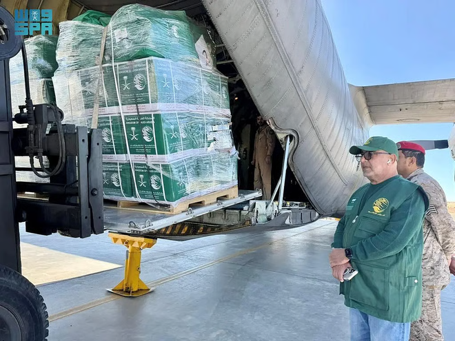 کنگ سلمان سینٹر برائے انسانی امداد کی طرف سے غزہ کے رہائشیوں کی مدد کے لیے 69 واں طیارہ روانہ کیا گیا ہے۔