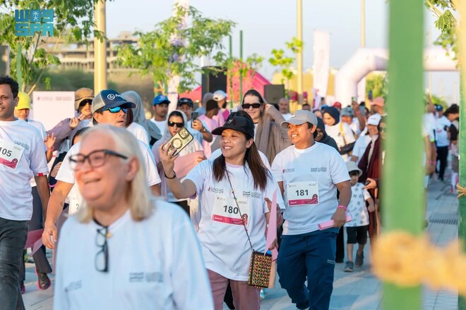 سپورٹس بلیوارڈ نے بریسٹ کینسرآگاہی کے عالمی ماہ کے موقع پر ریاض کے پرومینیڈ خصوصی واک کا اہتمام کیا جس میں بڑی تعداد میں مختلف شعبہ ہائے زندگی سے تعلق رکھنے والے افراد نے شرکت کی۔