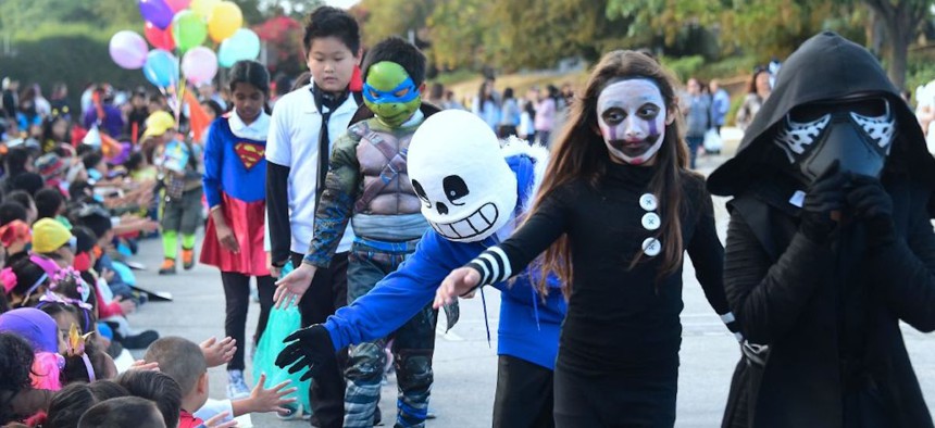 بچے خوفناک روپ دھار کر ’ٹرِک آر ٹریٹ‘ کی فرمائش کرتے ہیں (فوٹو: گیٹی امیجز)