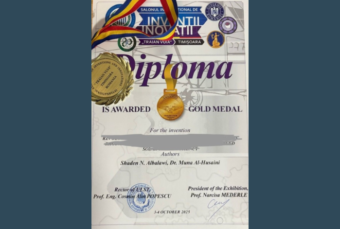 شادن البلوی جو کنگ عبدالعزیز یونیورسٹی کی فیکلٹی آف سائنس میں فاؤنڈیشن ائیر کی طالبہ ہیں، نے رومانیہ میں انوینشن ایگزیبیشن 2025 میں مملکت کی نمائندگی کرتے ہوئے گولڈ میڈل اور پہلی پوزیشن حاصل کی۔