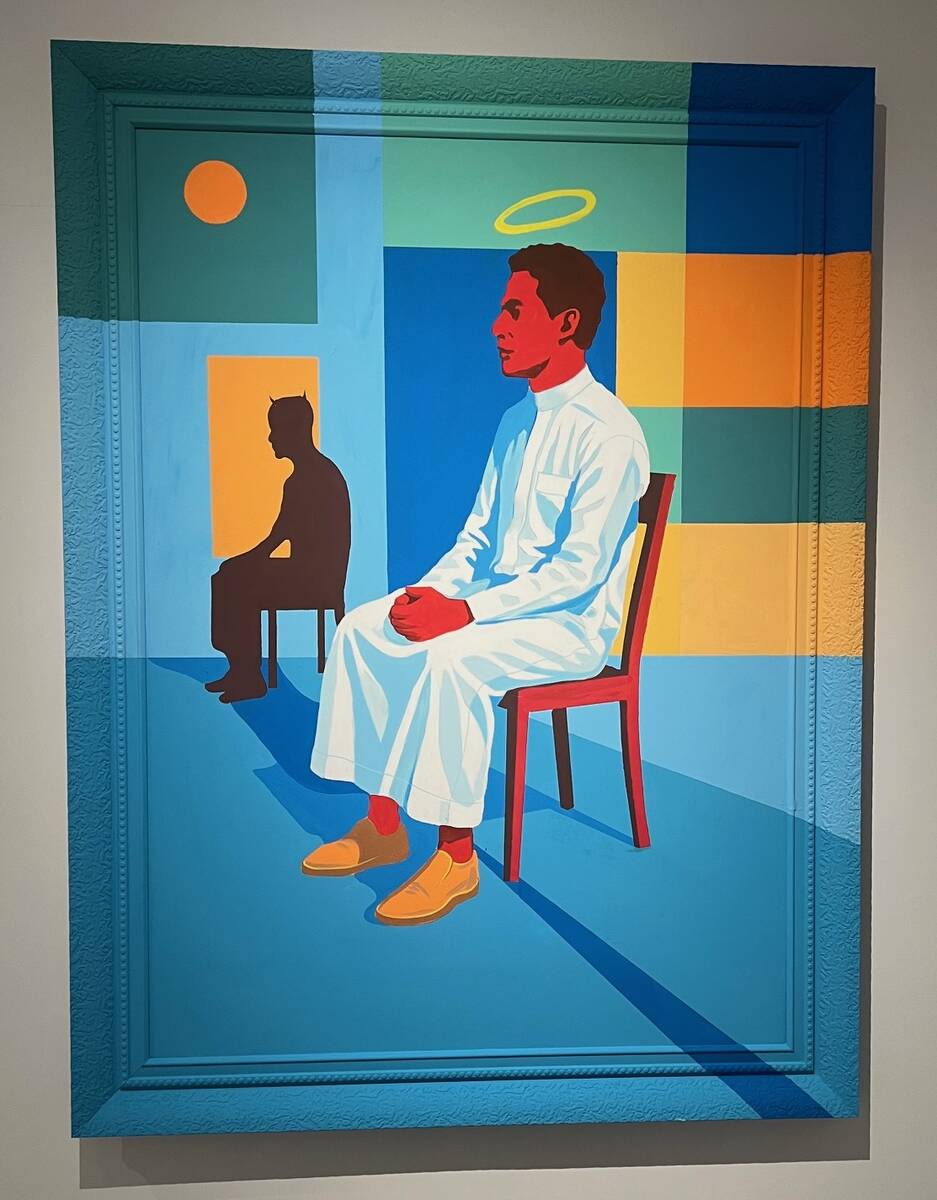 دوسری تصویر ’سینٹ آف دی پیپل‘ میں ایک آدمی کو دکھایا گیا ہے جو پرسکون انداز میں کرسی پر بیٹھا ہے، اور اس کے سر کے اوپر ہلکی روشنی کا دائرہ چمک رہا ہے۔