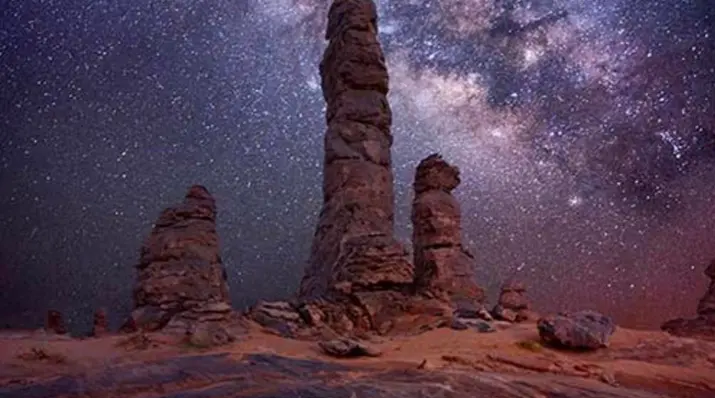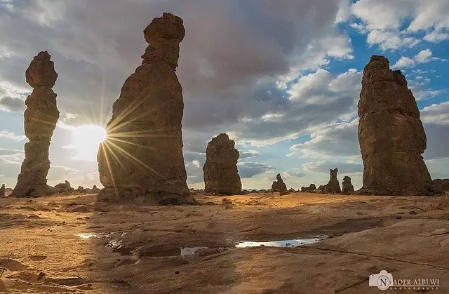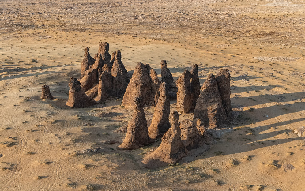 یہ پہاڑ تيما کے مغرب میں واقع ہیں اور اپنے مینار نما اور برج نما صخری ڈھانچوں کے لیے مشہور ہیں جبکہ ان کے گرد پھیلی سنہری ریت جگہ کی خوبصورتی کو مزید نکھار دیتی ہے۔