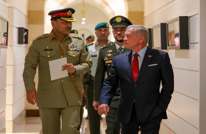 پاکستان کی فوج کے سربراہ فیلڈ مارشل عاصم منیر نے اپنے سرکاری دورۂ اردن کے موقعے پر اردن کے بادشاہ اور مسلح افواج کے سپریم کمانڈر عبداللہ دوم ابن الحسین سے ملاقات کی ہے۔