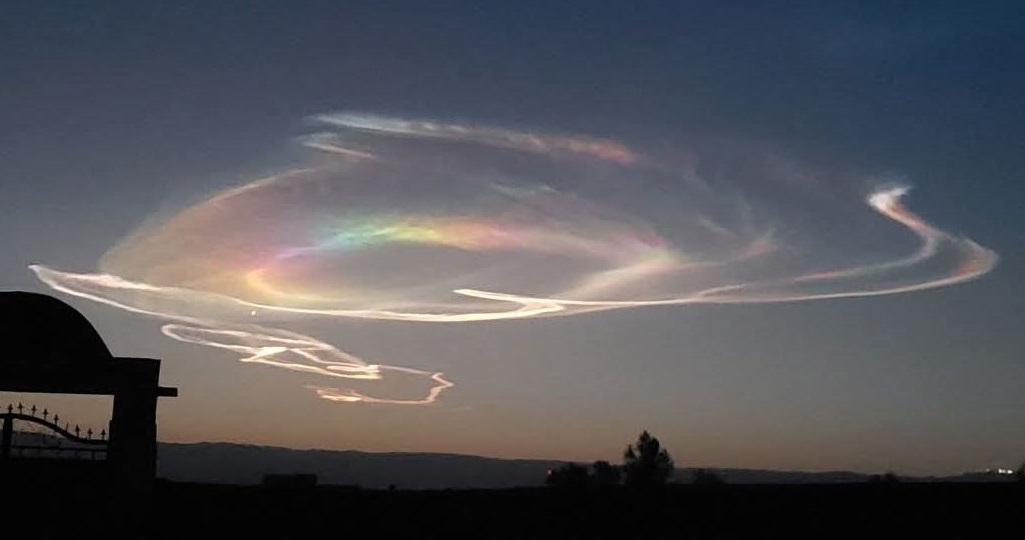 ان کے مطابق بادلوں میں قوسِ قزح کی طرح رنگین دھبے یا حلقے بن جاتے ہیں جو سرخ، نارنجی، پیلے، سبز، نیلے، نیلم اور جامنی رنگوں سے چمکتے ہیں۔