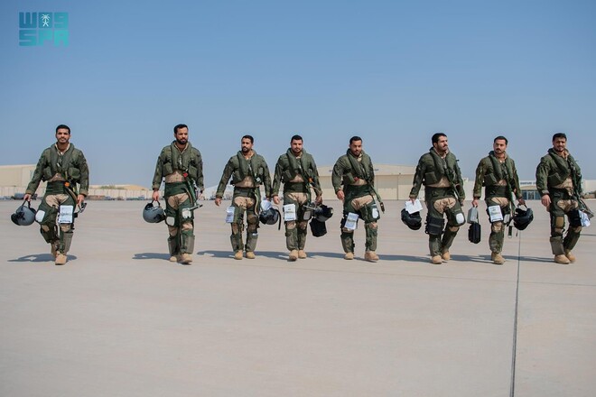 واضح رہے سعودی رائل ایئر فورس کے دستے متحدہ عرب امارات کے الظفرہ ایئر بیس پر  پہنچے جہاں ان کا استقبال مشترکہ گروپ کے کمانڈر نے کیا۔