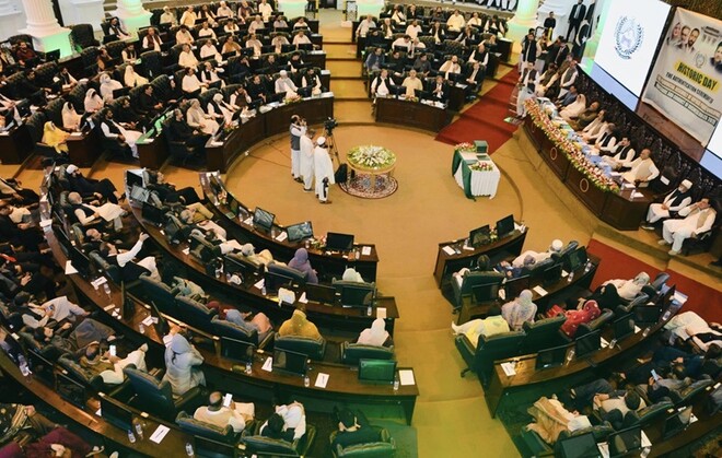خیبر پختونخوا کی کابینہ میں 10 وزرا، دو مشیر اور ایک معاونِ خصوصی کو شامل کیا گیا ہے (فائل فوٹو: خیبر پختونخوا اسمبلی)