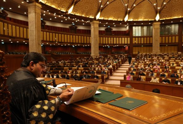 سپیکر ملک احمد خان نے اسے ’ریاست کی بنیادی ذمہ داری‘ قرار دیتے ہوئے کہا کہ تمام سیاسی قوتوں کو اس عمل میں شامل ہونا چاہیے۔ (فوٹو: اے پی پی)