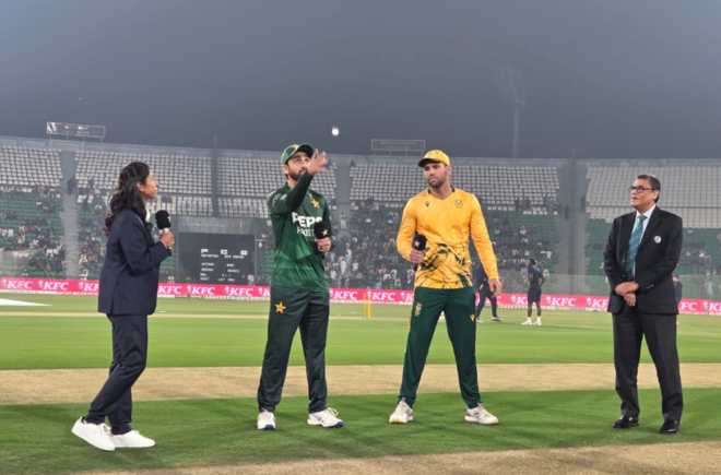 تین میچوں پر مشتمل ٹی20 سیریز کے دوسرے میچ میں پاکستان نے ٹاس جیت کر جنوبی افریقہ کے خلاف فیلڈنگ کا فیصلہ کیا ہے۔