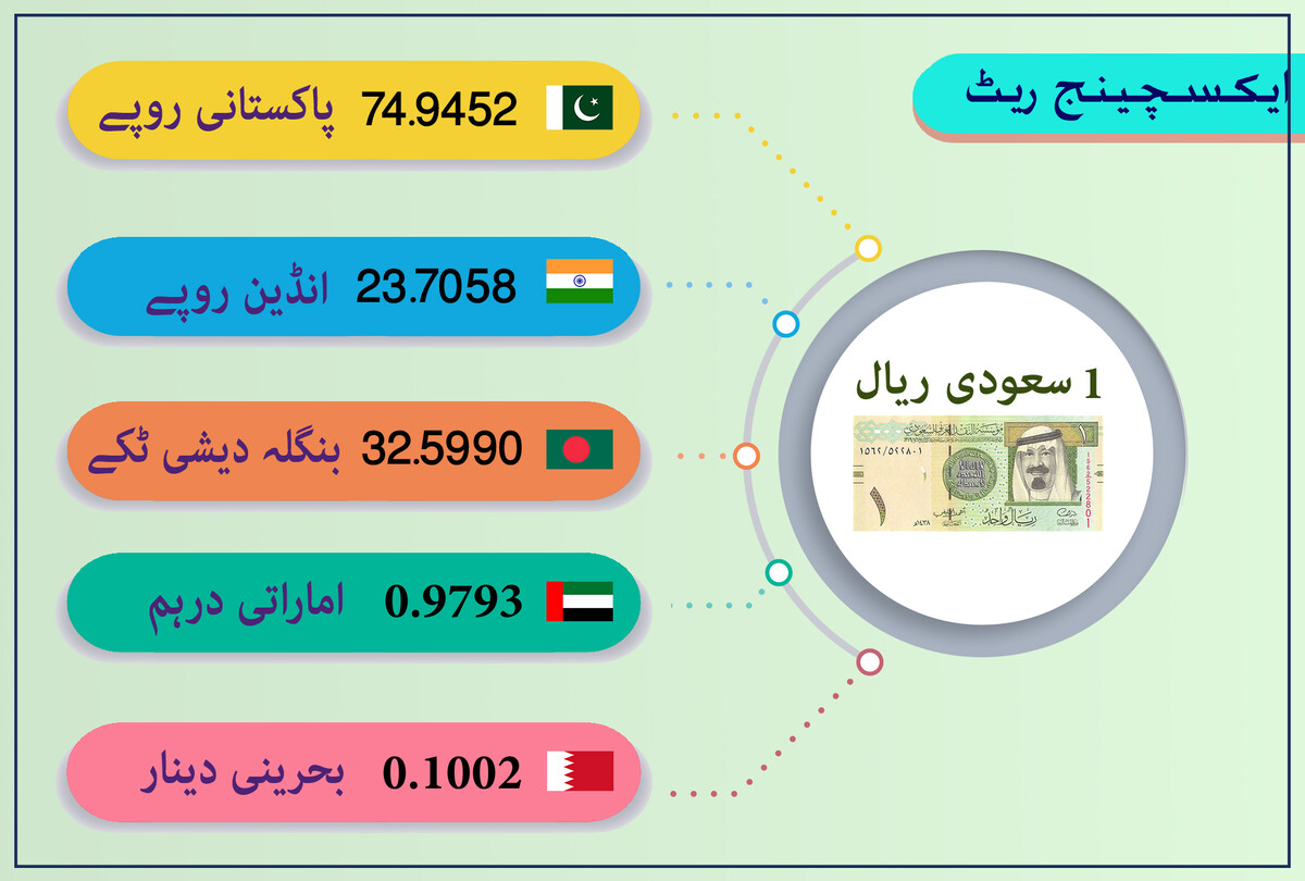 اتوار 02 نومبر 2025 کو سعودی عرب میں ریال کا ریٹ