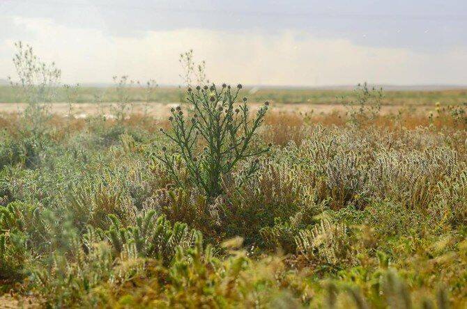 جن انواع کی شجر کاری کئی گئی ہے ان میں پالک کی طرح کی نمکین جھاڑیاں، خاکستری اور مہلک دار افسنطین، اکیشیا اِتبائیکا اور کیلیگونم کوموسم شامل ہیں جو شدید اور خشک آب و ہوا سے لڑ کر قائم رہنے کی صلاحیت رکھتے ہیں۔