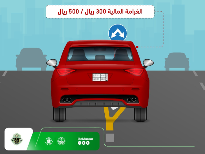 محکمہ ٹریفک نے وضاحت کی ہے کہ سڑک پر مقررہ لینز کی حدود کی پابندی نہ کرنے پر 300 ریال سے 500 ریال تک جرمانہ ہو سکتا ہے۔