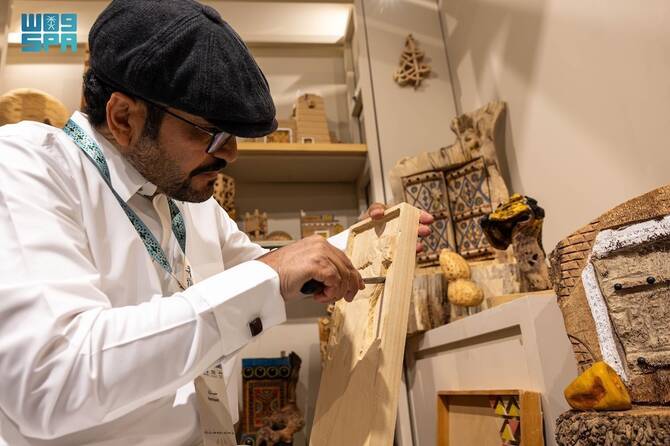 لکڑی پر کندہ کاری کے لائیو مظاہرے، جامنی مٹی کے ساتھ ظروف سازی، کشیدہ کاری، بُنائی، دھاتی کام اور لوک مہارتیں، ریاض میں جاری ہفتۂ دستکاری کا تیسرے ایڈیشن لوگوں کو اپنی جانب بھرپور انداز میں متوجہ کر رہا ہے۔