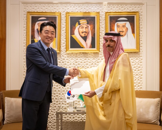 سعودی ولی عہد شہزادہ محمد بن سلمان کو جنوبی کوریا کے صدر لی جے میونگ کی جانب سے تحریری مکتوب موصول ہوا ہے۔