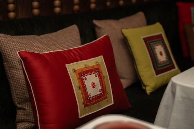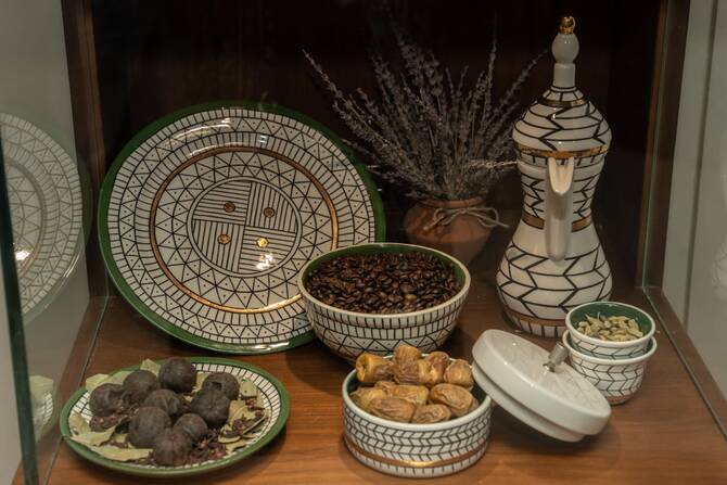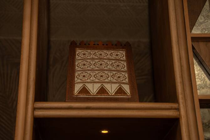 یہاں فنکارانہ تفصیل جا بجا بکھری پڑی ہے جس میں ہاتھ سے بنے ہوئے لیمپ اور ضرورت کے مطابق تیار کردہ رکابیاں، طشتریاں، چھری کانٹے وغیرہ رکھے گئے ہیں جو مملکت کے مختلف علاقوں کی کہانیوں اور روایتوں کے عکاس ہیں۔