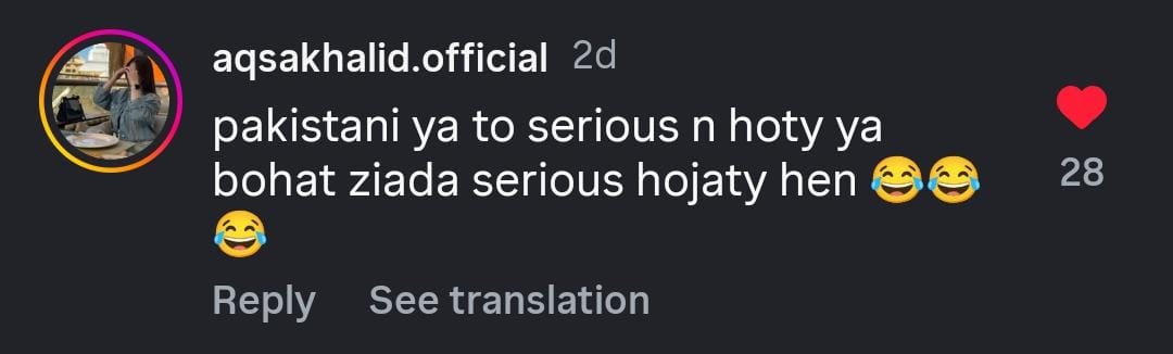 اس ویڈیو پر ردعمل دیتے ہوئے اقصی خالد نے لکھا کہ ’پاکستانی یا تو سیریس نہیں ہوتے یا پھر بہت سیریس ہو جاتے ہیں۔‘