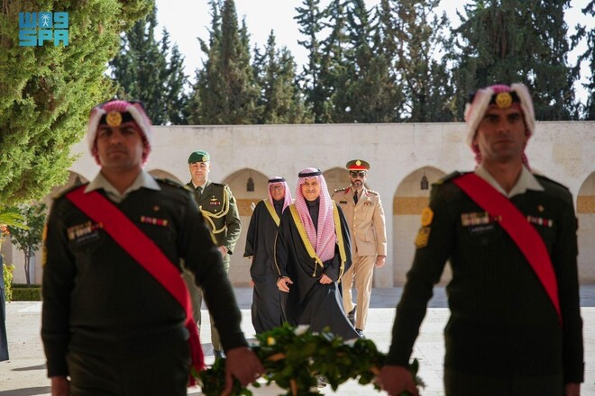 قبل ازیں سعودی سفیر بسمان پیلس پہنچے تو انہیں گارڈ آف آنر پیش کیا گیا سعودی عرب اور اردن کے شاہی ترانے بجائے گئے۔