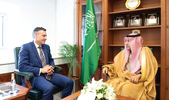 سعودی نائب وزیر برائے سیاسی امور نے ریاض میں آسٹریلوی وزارت خارجہ کے انڈر سیکرٹری کا خیرمقدم کیا (فوٹو: ایس پی اے)