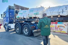 سعودی عرب نے فلسطینی عوام کےلیے جاری انسانی کوششوں کے ایک حصے کے طور پر جمعرات کو نیا امدادی قافلہ رفح بارڈر کراسنگ سے غزہ بھیجا ہے۔