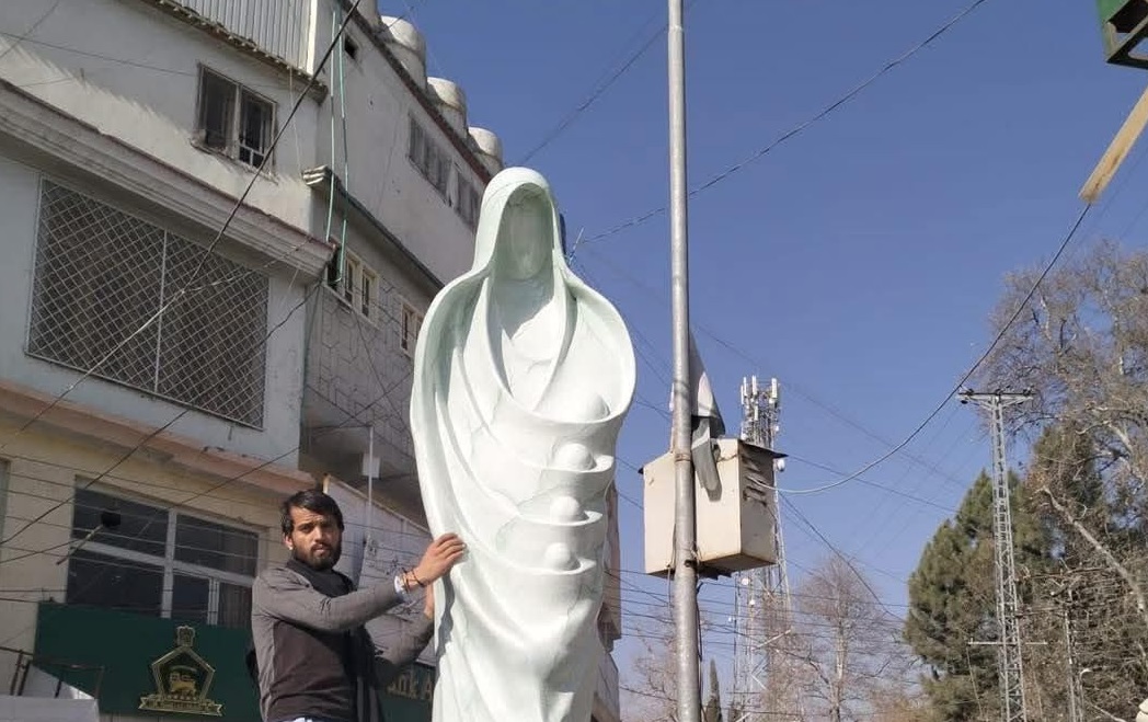 مقامی شہریوں نے مجسمے کو مرکزی چوک پر نصب کرنے کے اقدام کو سراہا تھا: فوٹو ذوالفقار علی