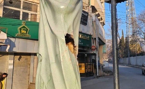 مقامی تاجروں کے مطابق مجسمے کے نچلے حصے کو نقصان پہنچایا گیا جس سے نو تعمیر شدہ مجسمے کو نقصان پہنچا ہے۔