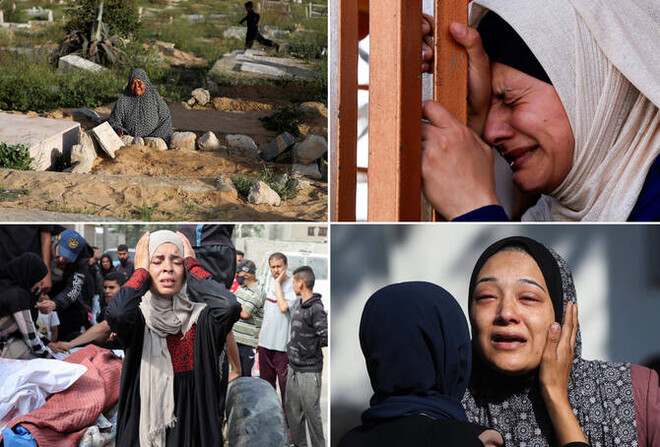 جنگ کے ابتدائی دنوں میں دنیا بھر میں ایک ویڈیو گردش کرتی رہی تھی جس میں ایک فلسطینی ماں اپنے ننھے بچے کی بے جان لاش کو بانہوں میں تھامے، خون آلود کفن میں لپٹے ہوئے اسے آہستہ آہستہ جھولا دے رہی تھی۔
