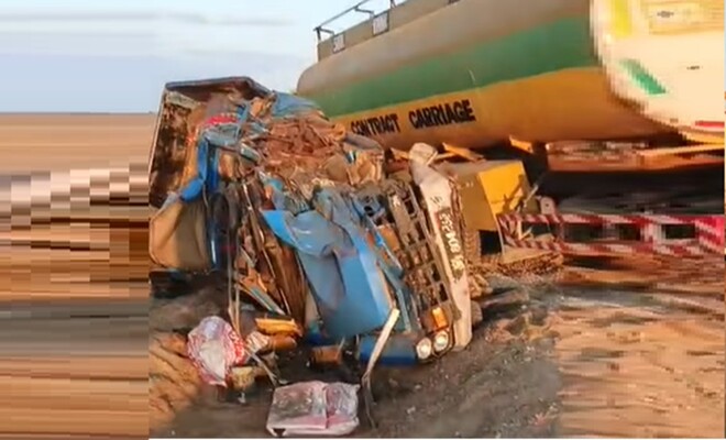 حکام کے مطابق یہ واقعہ سنیچر اور اتوار کی درمیانی شب چاغی کے علاقے نوکنڈی سے لگ بھگ 35 کلومیٹر دور ویران علاقے میں کچے راستے پر پر پیش آیا جہاں ایک زمباد گاڑی اور آئل ٹینکر میں خوفناک ٹکر ہوئی-