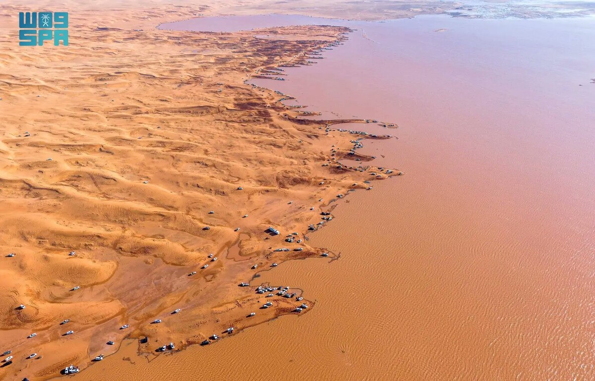 سعودی عرب کے قصیم ریجن کے مشرقی علاقے میں واقع النبقیہ قصبے کے قریب صحرائی علاقے کا وسیع رقبہ بارش کے بعد قدرتی جھیل میں تبدیل ہو گیا۔