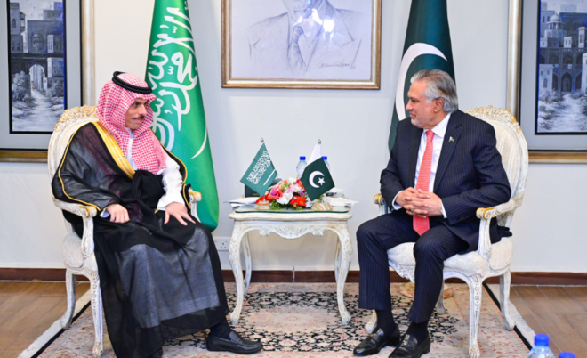 پاکستان کے نائب وزیرِ اعظم اور وزیرِ خارجہ اسحاق ڈار نے منگل کو سعودی عرب کے وزیرِ خارجہ شہزادہ فیصل بن فرحان کو ٹیلی فون کیا۔