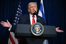 صدر ٹرمپ نے کہا کہ اسرائیل نے اپنی ذمہ داریاں ’نبھائی ہیں‘ اور اب ذمہ داری حماس پر عائد ہوتی ہے۔ (فوٹو: اے ایف پی)