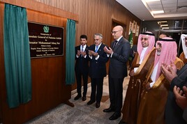 وزیر خارجہ اسحاق ڈار نے اتوار کو جدہ میں او آئی سی وزرائے خارجہ کونسل کے ایک غیرمعمولی اجلاس سے خطاب کرتے ہوئے کہا کہ ’میں خادم الحرمین الشریفین شاہ سلمان بن عبدالعزیز، سعودی عرب کے ولی عہد و وزیراعظم محمد بن سلمان اور وزیر خارجہ فیصل بن فرحان کا شکریہ ادا کرنا چاہتا ہوں جنہوں نے او آئی سی اور امت مسلمہ کے مسائل کے حل کے لیے مسلسل تعاون کیا۔‘