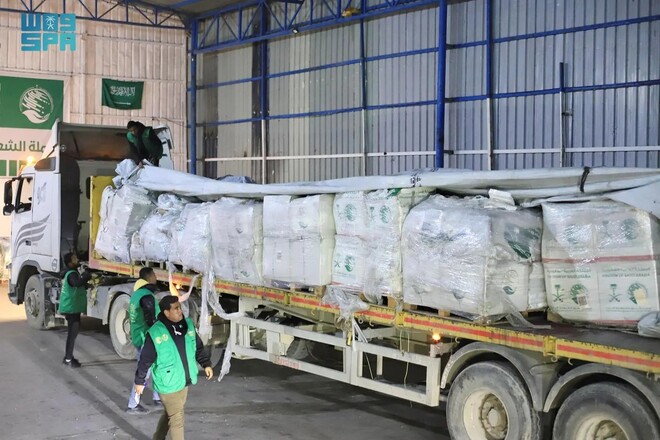 سعودی امدادی ایجنسی شاہ سلمان مرکز کے تحت فلسطینی عوام کےلیے امدادی مہم کے ایک حصے کے طور پر نیا امدادی قافلہ بچوں کے لیے موسم سرما کے ملبوسات لے کرغزہ پہنچا ہے۔