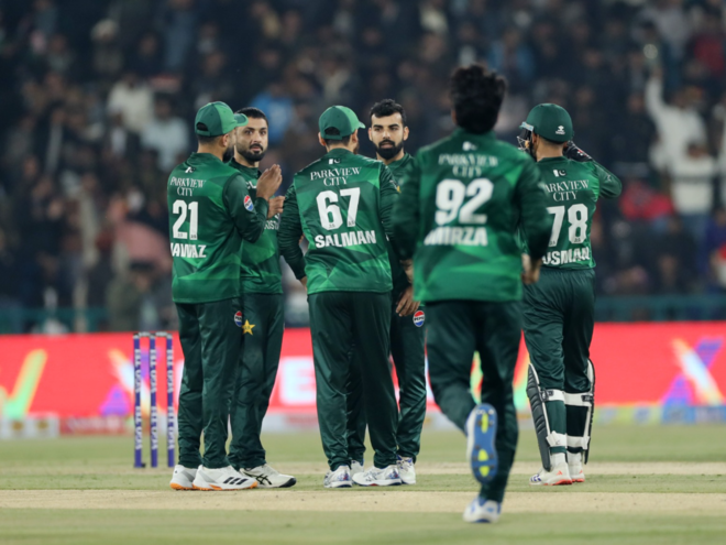 پاکستان کی جانب سے صائم ایوب اور ابرار احمد نے دو، دو جبکہ محمد نواز اور شاداب خان نے ایک ایک وکٹ حاصل کی۔