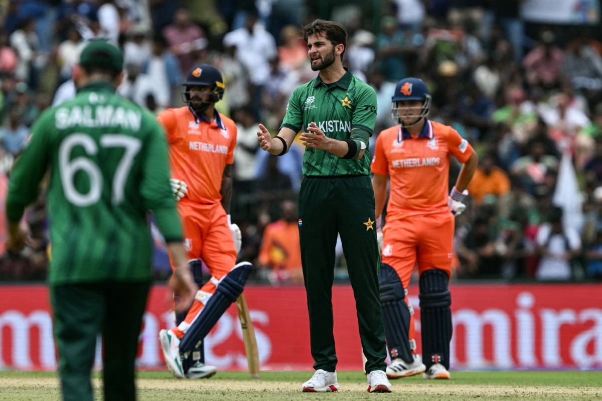 کپتان سلمان علی آغا بڑی اننگز کھیلنے میں کامیاب نہ ہو سکے اور آٹھ گیندوں پر 12 رنز بنا کر آریان دت کی گیند پر مائیکل لیوٹ کو کیچ دے بیٹھے۔ بابر اعظم نے محتاط بیٹنگ کی اور 18 گیندوں پر 15 رنز بنائے تاہم وہ رولوف وین ڈر مروا کی گیند پر کائل کلین کے ہاتھوں کیچ آؤٹ ہو گئے۔