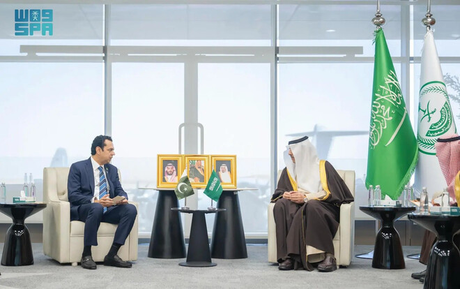 سعودی نائب وزیر داخلہ شہزادہ ڈاکٹر عبدالعزیز بن محمد بن عیاف سے پیر کو ریاض میں ورلڈ ڈیفنس شو 2026 کے موقع پر پاکستان کے وزیر مملکت برائے داخلہ طلال چوہدری اور دیگر ملکوں کے وزرا نے ملاقاتیں کیں۔
