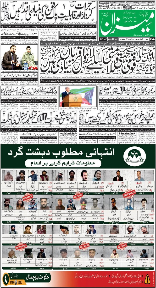 حکومت کی جانب سے بدھ کی صبح کوئٹہ کے بڑے اخبارات کے صفحہ اول پر ’انتہائی مطلوب دہشت گرد‘ کے عنوان سے نصف صفحے کا ایک اشتہار شائع کیا گیا ہے جس میں ان افراد کے نام، عرفیت، پتے اور تصاویر شامل ہیں۔