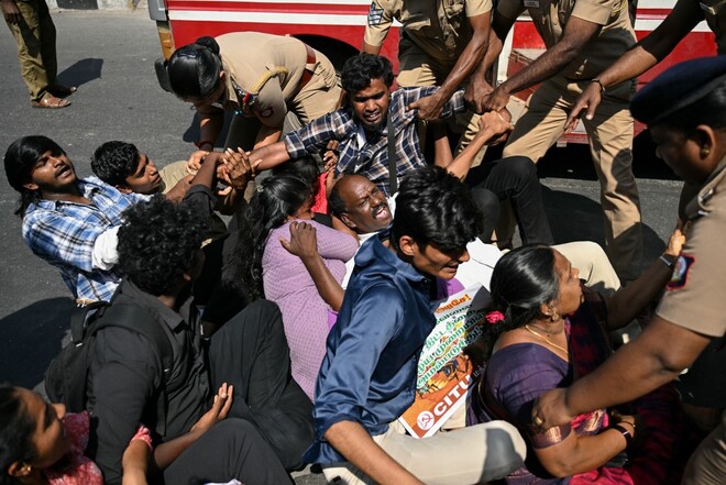 اس ہڑتال کے حوالے سے بتایا گیا ہے کہ اس میں لیبر کارکنوں کو کسان تنظیموں کے علاوہ طلبہ گروپس کی حمایت بھی حاصل ہے۔ (فوٹو: اے ایف پی)