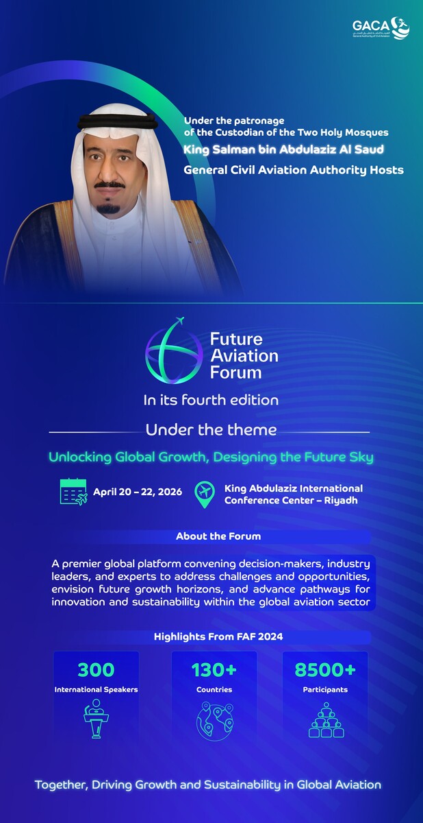 سعودی جنرل اتھارٹی آف سول ایوی ایشن کے تحت فیوچرایوی ایشن فورم کا چوتھا ایڈیشن اپریل 2026 میں ریاض میں ہوگا۔