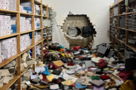 سی سی ٹی وی فوٹیج میں دیکھا جا سکتا ہے کہ نقب زن ابتدا میں چھوٹے سوراخ کے ذریعے دکان میں داخل ہونے کی کوشش کرتے ہیں، تاہم پھنس جانے کے بعد سوراخ کو بڑا کر کے دکان میں داخل ہوئے۔