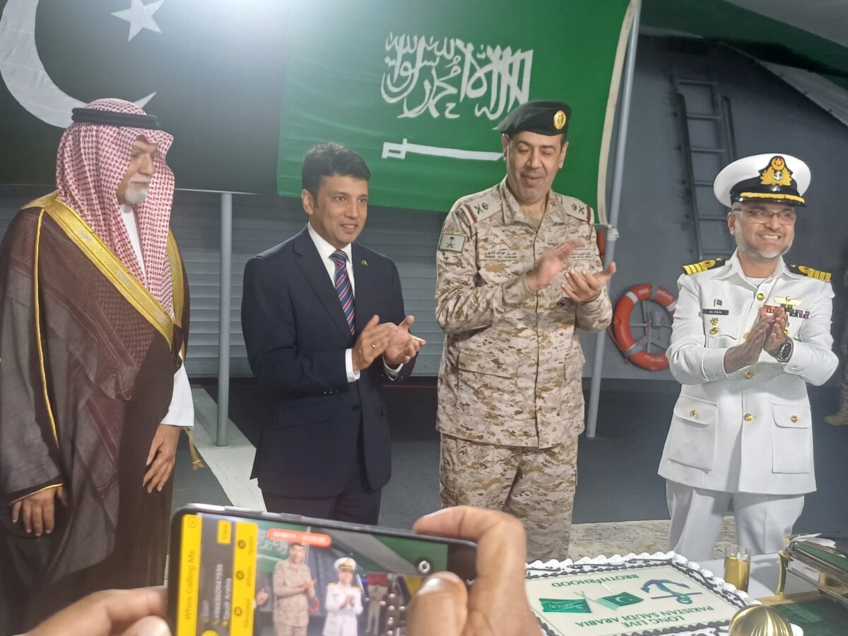 پاک، سعودی فرینڈ شپ کا کیک کاٹا گیا قومی ترانے بجائے گئے۔ (فوٹو: اردونیوز)