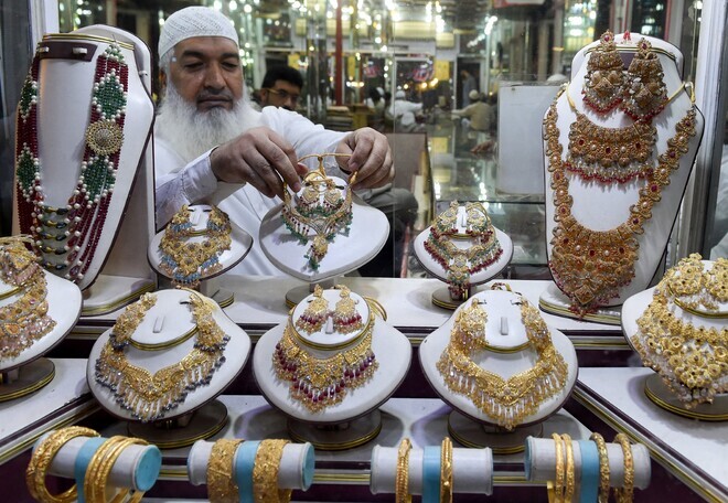 آل پاکستان صرافہ جیمز اینڈ جیولرز ایسوسی ایشن کے مطابق جمعرات کو اس اضافے بعد ملک میں 24 قیراط سونے کی فی تولہ قیمت 5 لاکھ 23 ہزار 962 روپے ہوگئی ہے جبکہ گزشتہ دن اس کی قیمت 5 لاکھ 16 ہزار 62 روپے ریکارڈ کی گئی تھی۔