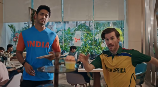 ویڈیو میں جنوبی افریقی فین کو ایک کپ کیک کے ذریعے چھیڑا گیا اور جنوبی افریقہ کے آئی سی سی ٹورنامنٹس میں ماضی کے ریکارڈ پر طنز کیا گیا۔ ویڈیو میں دیکھا جا سکتا ہے کہ پلیٹ پر ایک عدد کپ کیک رکھا ہوتا ہے جسے اٹھانے کے لیے پروٹیز اور انڈین دونوں فینز آگے بڑھتے ہیں لیکن پروٹیز فین کپ کیک پہلے اٹھانے میں کامیاب ہو جاتا ہے۔