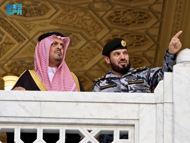 شہزادہ سعود بن مشعل بن عبدالعزیز نے گورنر مکہ شہزادہ خالد بن فیصل کا تہنیتی پیغام دیا، مسجد الحرام میں زائرین کےلیے سکیورٹی اہلکاروں کی خدمات کو سراہا۔