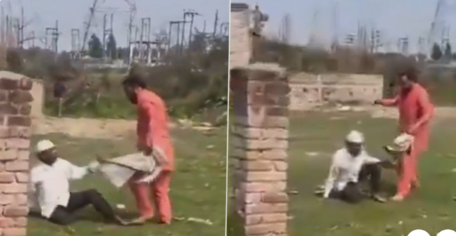 ویڈیو لوگوں کو ایک شخص کو ڈنڈوں سے پیٹتے اور برا بھلا کہتے ہوئے دیکھا جا سکتا ہے۔