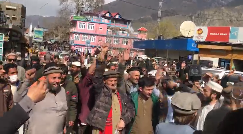 سکیورٹی فورسز سے اظہار یکجہتی کے لیے چترال میں شہریوں نے ریلی نکالی (فوٹو: ویڈیو گریب)