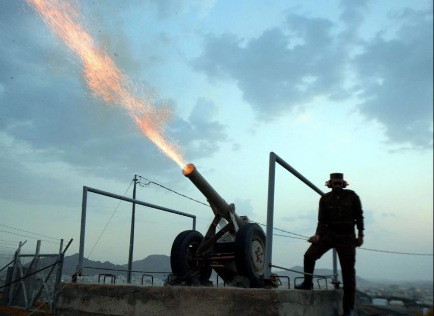 ہوا میں گولے چھوڑتی توپوں کی آوازیں جنھیں شہروں میں دور دور تک سنا جا سکتا ہے، ان کا تعلق اصل میں رمضان المبارک اور عید کی چھٹیوں کے آغاز کے روایتی اعلان سے ہوتا ہے۔