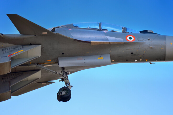 سخوئی طیارے نے آسام کے جورہاٹ ایئر بیس سے اڑان بھری تھی۔ فائل فوٹو: آئی اے ایف